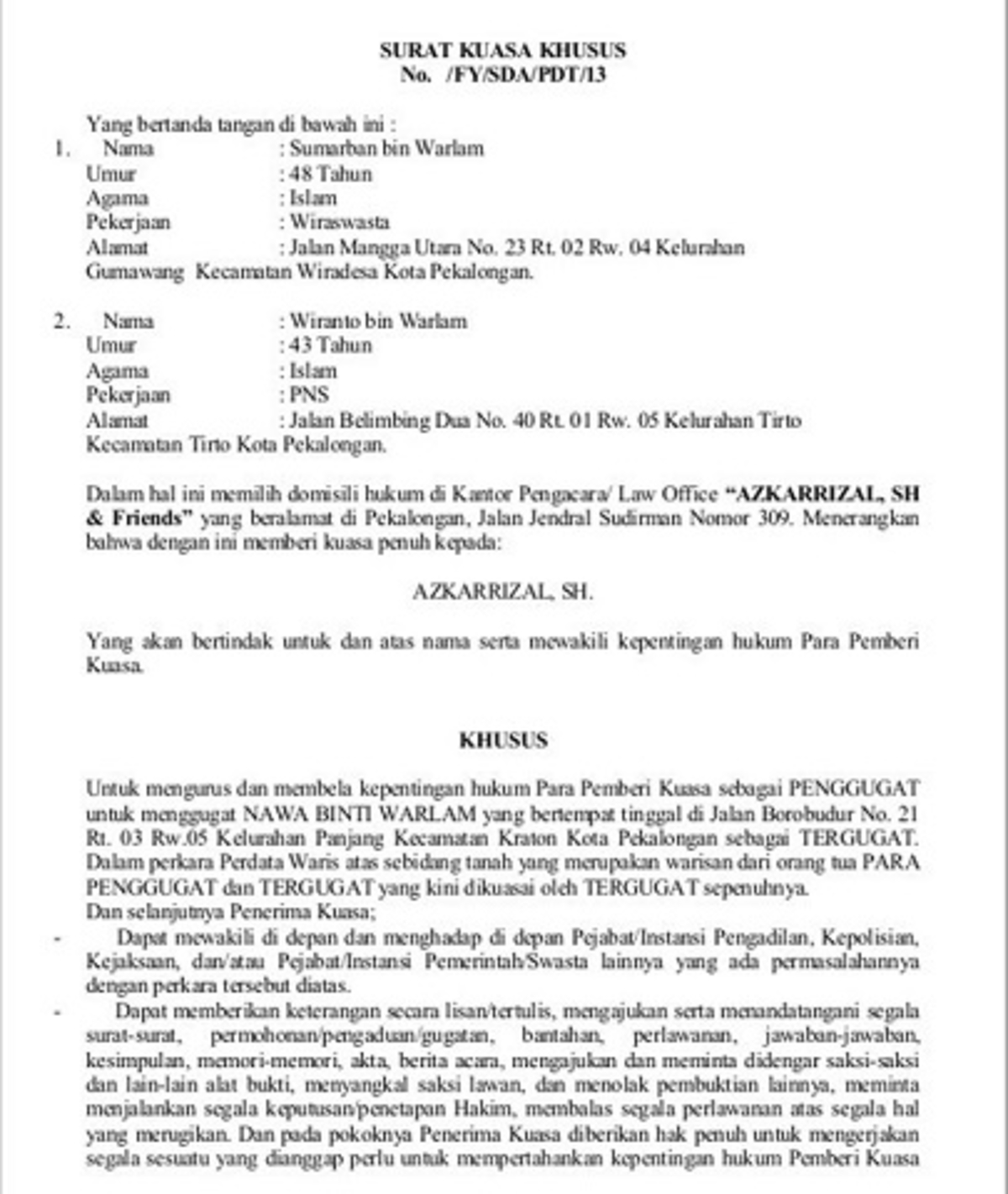 Contoh Surat Kuasa Khusus Perdata - Portal Uang from portal-uang.com Surat kuasa khusus ini diperuntukkan untuk di pengadilan. Contoh surat kuasa khusus pengajuan gugatan wanprestasi gugatan wanprestasi muncul karena salah satu pihak tidak memenuhi prestasinya baik karena disengaja maupun karena tidak disengajamisalnya dalam perkara perjanjian utang piutang. The collection that consisting of chosen picture and the best among others. Contoh surat kuasa khusus wanprestasi involve some pictures that related one another. Contoh surat kuasa khusus perdata pmh have an image from the other.contoh surat kuasa khusus perdata pmh in addition, it will include a picture of a sort that may be seen in the gallery of contoh surat kuasa khusus perdata pmh. Contoh (eksepsi) surat keberatan dalam perkara pidana. Find out the newest pictures of contoh surat kuasa khusus wanprestasi here, and also you can get the picture here simply. Contoh surat kuasa penggugat dalam ptun.